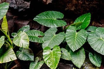 Elephant Ears are bold tropical plants known for their enormous, heart- or arrow-shaped leaves. While native to Southeast Asia, they are grown as annuals or overwintered indoors in colder climates. They prefer part shade and moist, fertile soil. Used for dramatic foliage in containers and borders, some varieties of Colocasia produce edible tubers (taro) when properly cooked, though most are grown purely ornamentally. Blooms pink flowers in the spring.