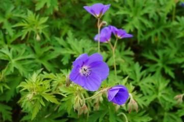 Johnson’s Blue is a hardy, mounding perennial with deeply cut leaves and clear blue, saucer-shaped flowers that bloom from late spring into summer. A hybrid of hardy geraniums, it thrives in full sun to partial shade and well-drained soil. Used in borders, cottage gardens, and as ground cover, it’s valued for its long bloom time and reliable performance. Its foliage may turn red in autumn, adding seasonal interest.
