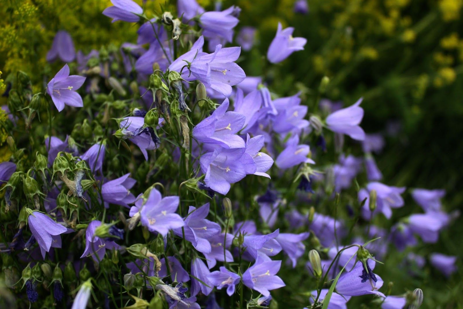 The Harebell is a delicate perennial with thin stems and nodding, bell-shaped blue to violet flowers. Native to Europe, North America, and Asia, it blooms from summer to early fall and prefers full sun to light shade and dry, well-drained soil. It is used ornamentally in wildflower and rock gardens and is important for supporting bees and other native pollinators.