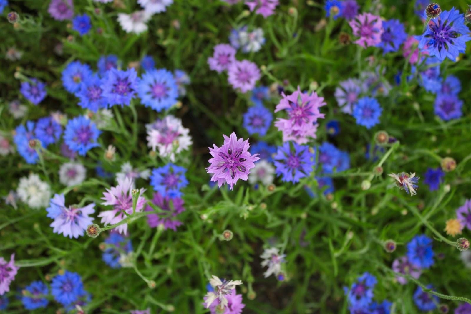 Cornflowers, also known as bachelor's buttons, are hardy annuals with vibrant blue, pink, purple, or white blooms. Native to Europe, they thrive in full sun and average, well-drained soil. Cornflowers are popular in wildflower mixes and cottage gardens. The edible flowers are used to garnish salads and teas, and the dried petals are sometimes added to herbal blends. Symbolically, cornflowers are associated with remembrance and were historically worn by young men in love.