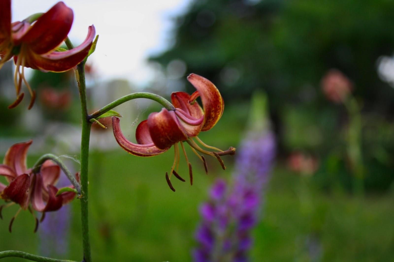 Martagon Lilies are elegant perennials with whorled leaves and tall stems bearing multiple nodding, turk’s-cap flowers in pink, purple, or white, often speckled with darker spots. Native to Europe and Asia, they bloom in early summer and prefer partial shade and humus-rich, well-drained soil. These lilies are used ornamentally in woodland or naturalistic settings and are known for their ability to naturalize. All parts of the plant are toxic to cats.